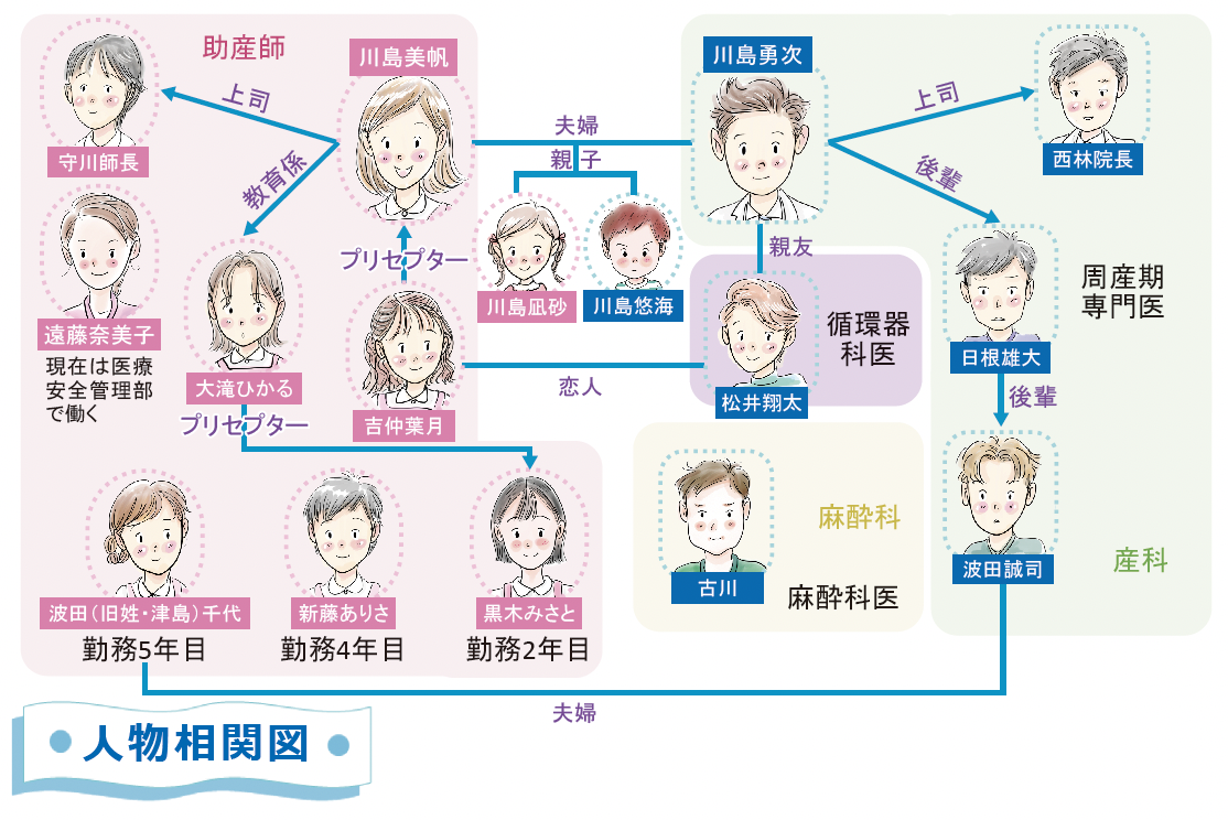 今回は疾患だけにとらわれず、医療安全やチームビルディングなど、さまざまな視点を入れてシナリオを仕上げました。助産師・美帆をとりまく人物たちが登場するストーリー(シナリオ)をもとにハイリスク妊娠を学べるよう解説しています。